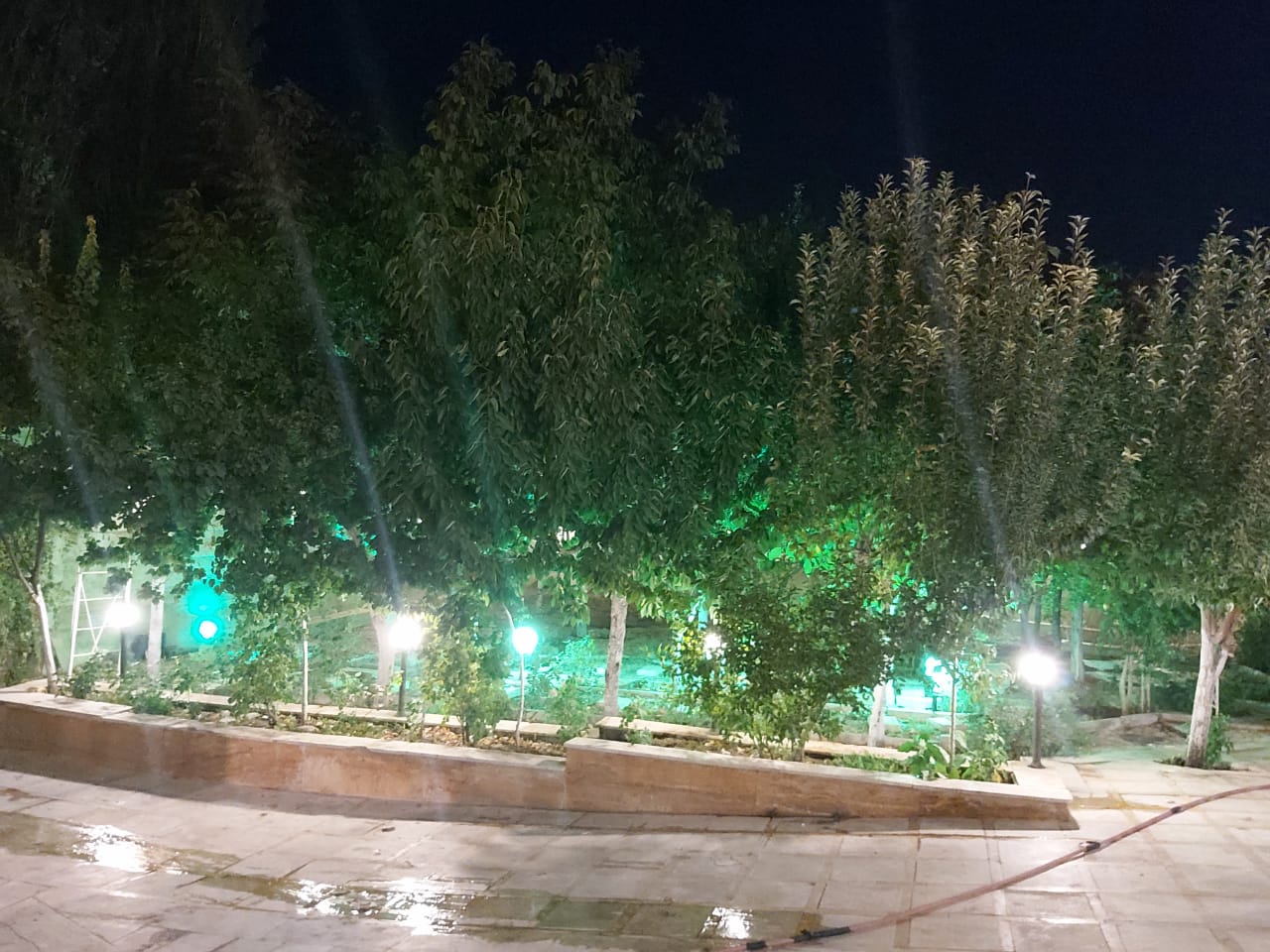 محوطه باغ شیک و تمیز ونور پردازی شده