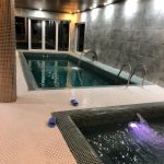 استخر آب گرم بزرگ رو باز تصفیه اتوماتیک کاشی درجه یک نورپردازی محوطه میز صندلی ۶ نفره داخل میز صندلی ۶ نفر حیاط