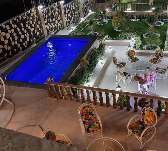500متر بنا ۳ خوابه دوبلکس با دو استخر سرپوشیده و روباز آب گرم و میز بیلیارد و فوتبال دستی و باربیکیو و پارکینگ مسقف و حیاط سازی مدرن و سیستم صوتی قوی