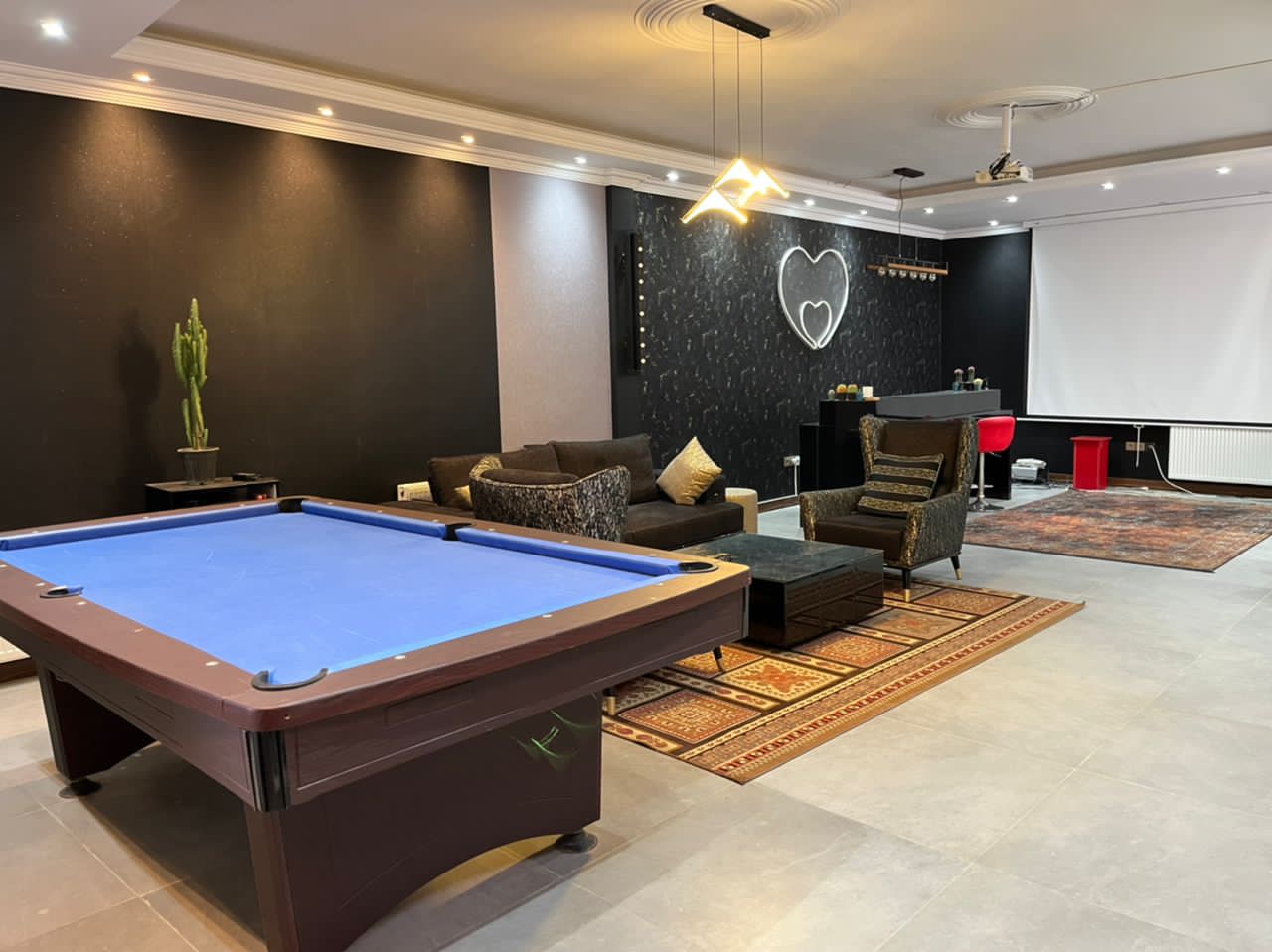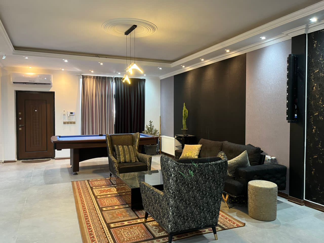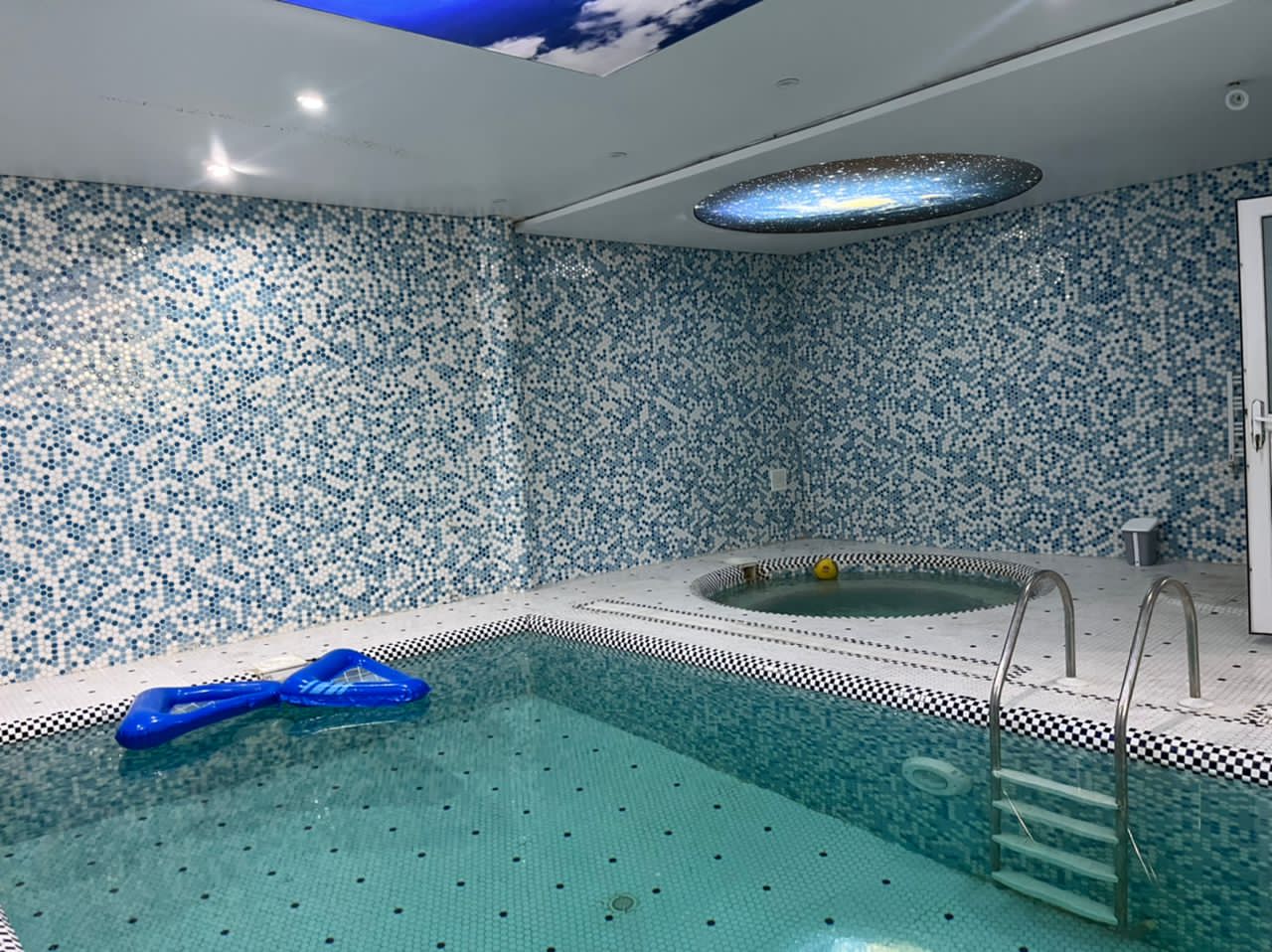 دوبلکس، سه خوابه، یک خوب مستر، استخرسرپوشیده، جکوزی، باربیکیو، آتشکده، ویدیو پروژکتور