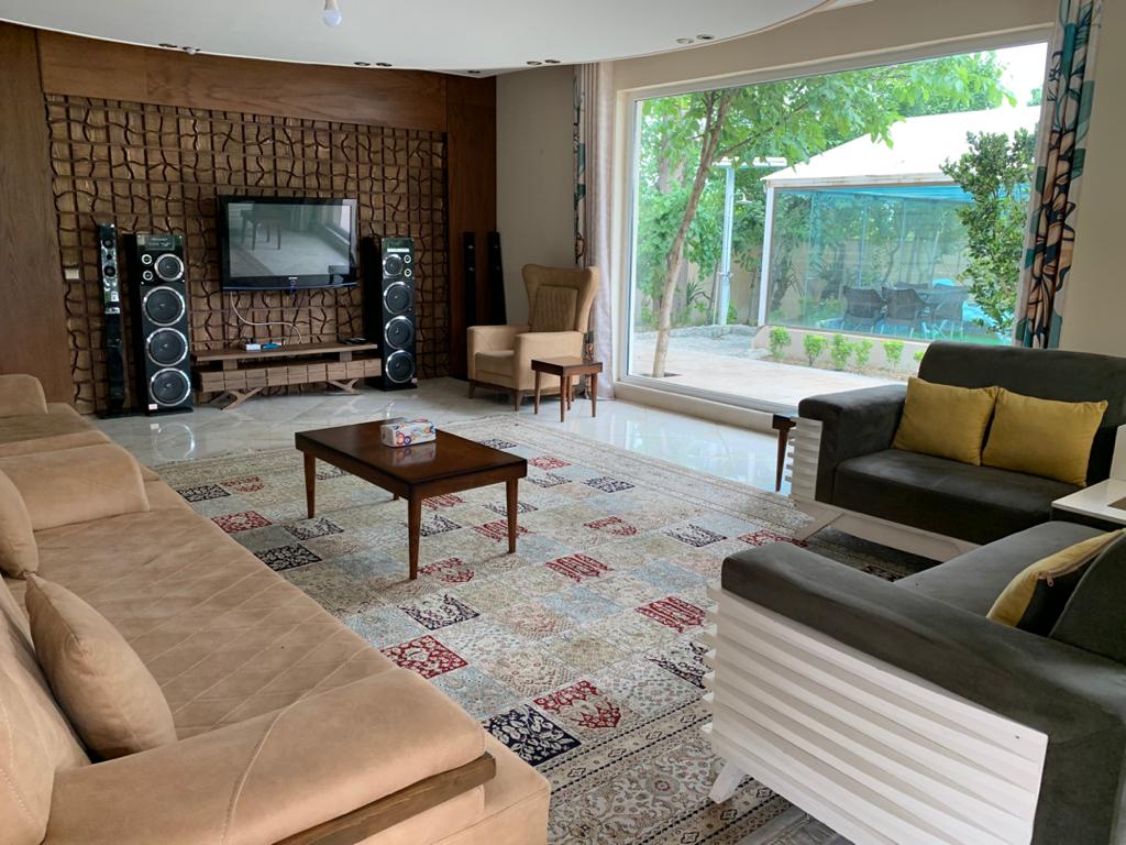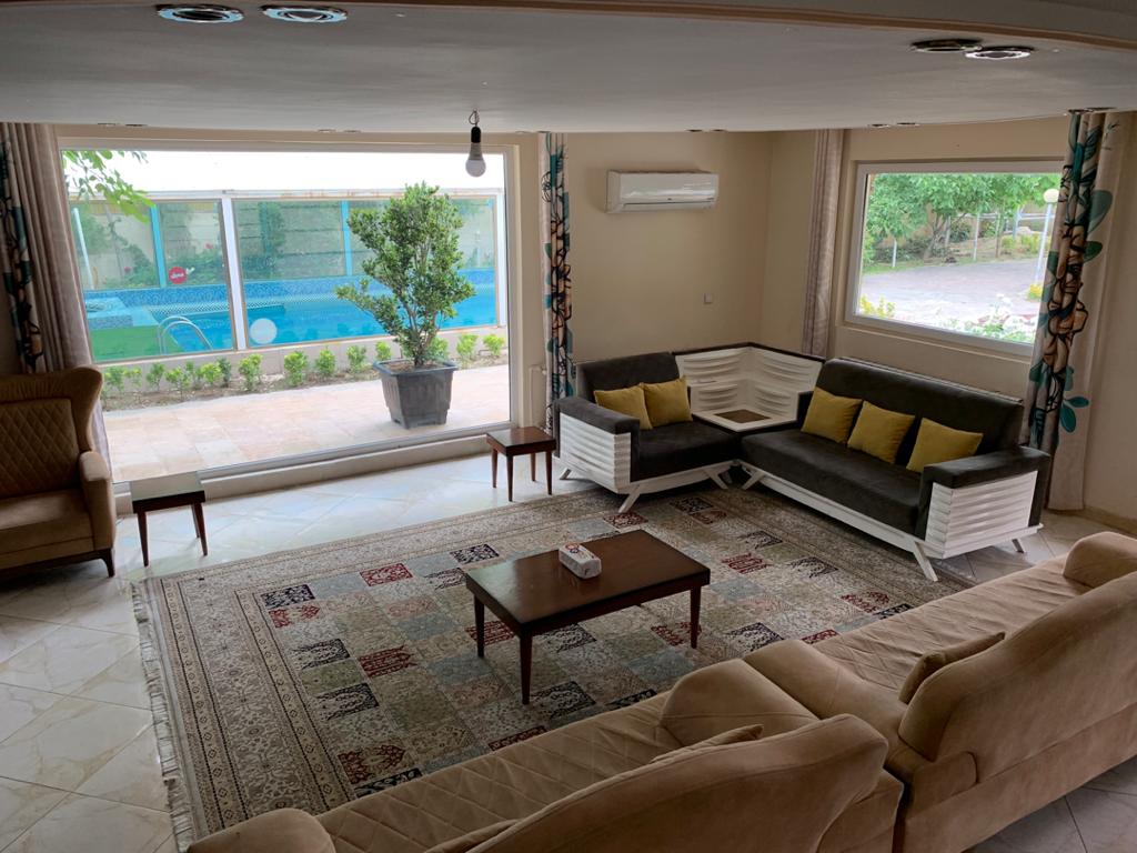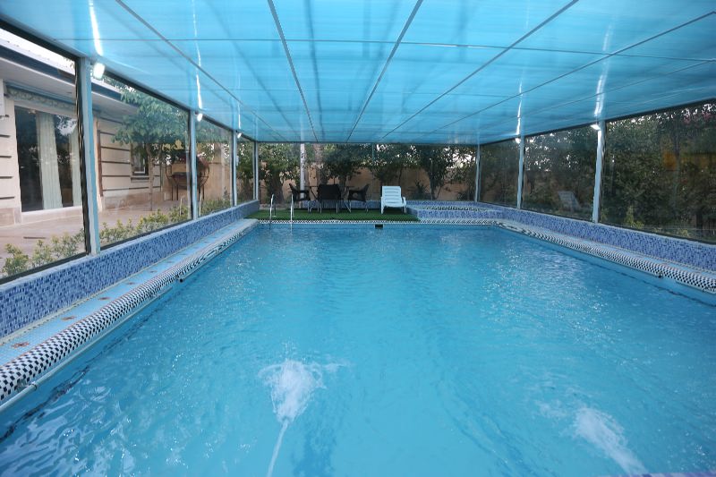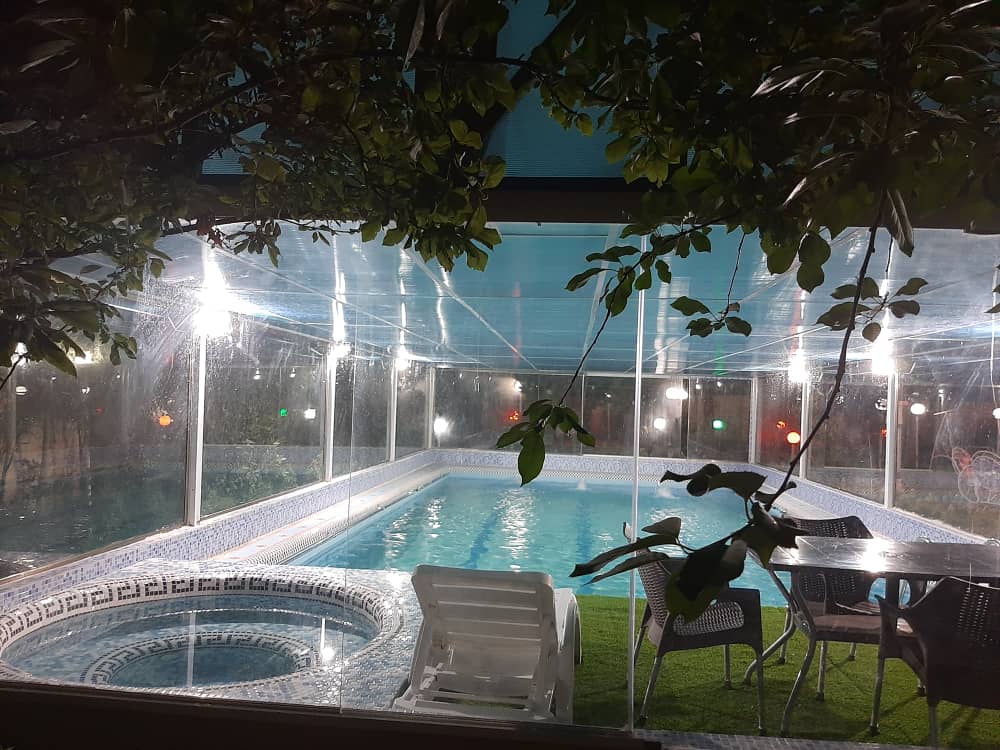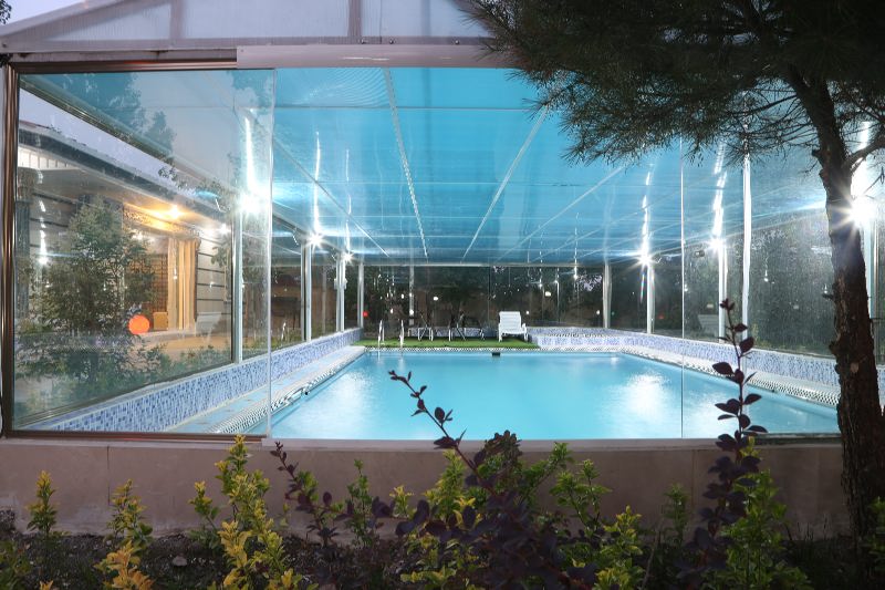 ۲۰۰۰متر باغ ۱۳۰متر بنا استخر بزرگ سرپوشیده شیشهای با ٱبگرم و تصفیه