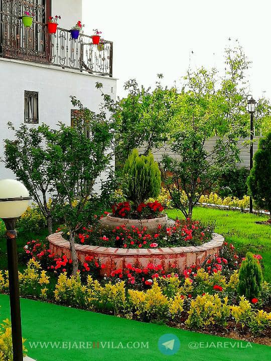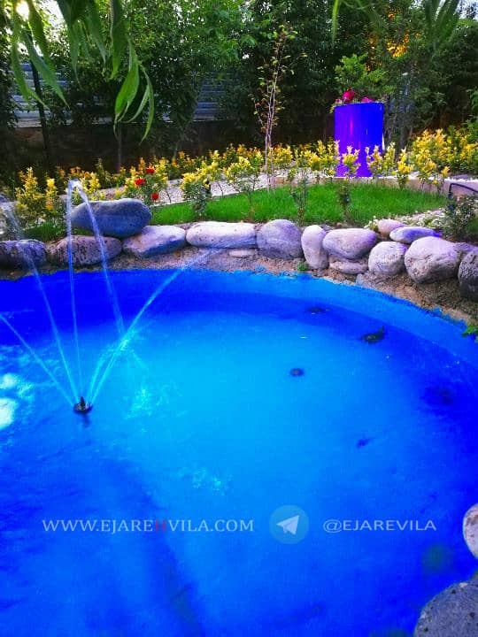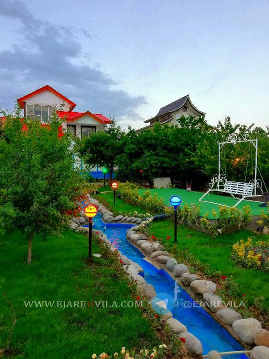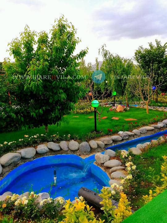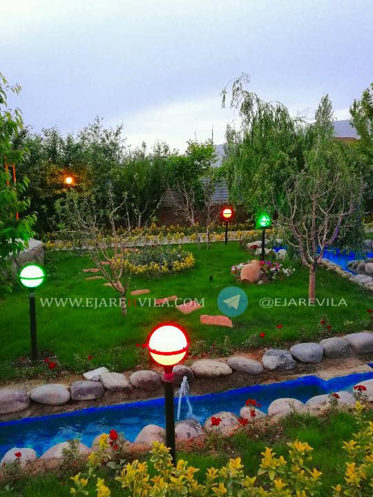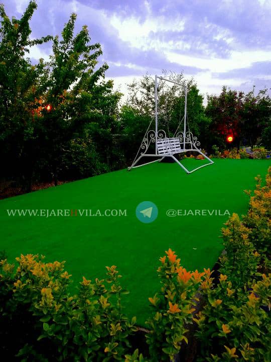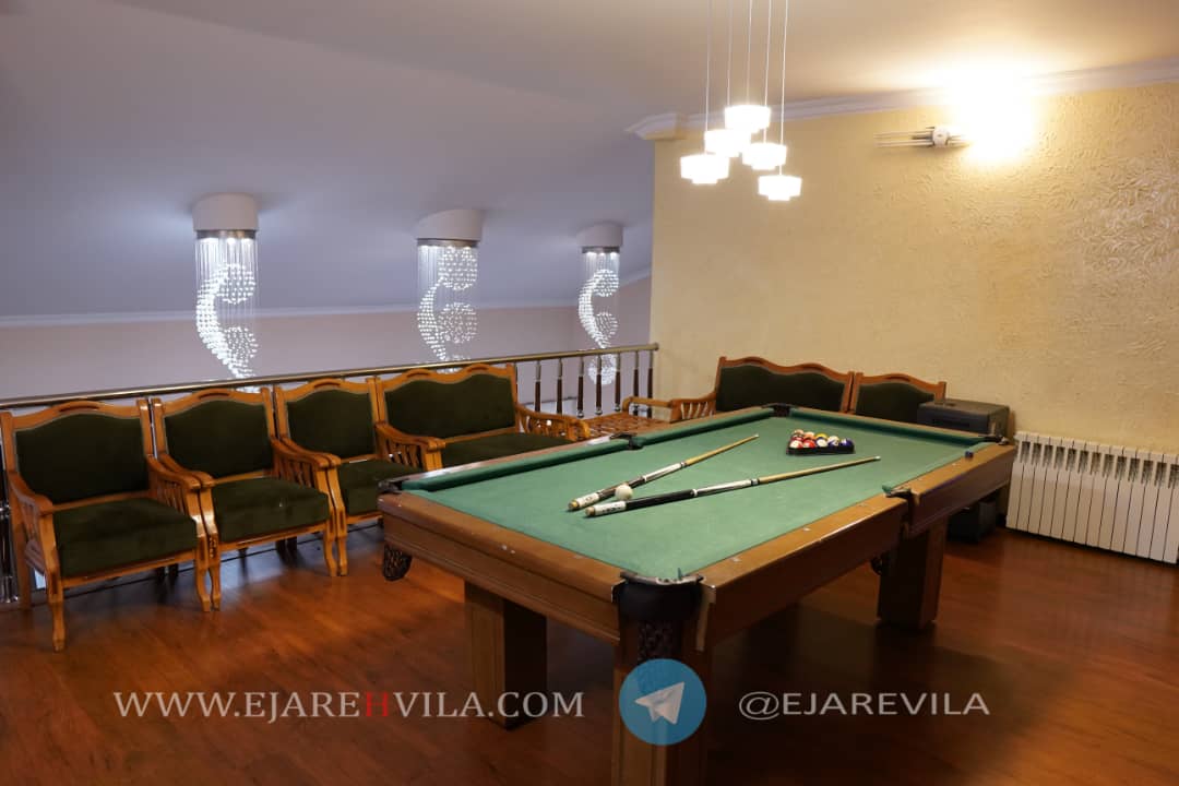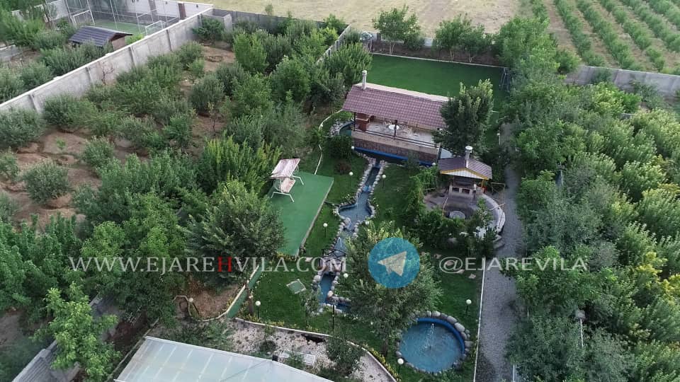 محوطه بسیار زیبا با انواع درختان میوه و تزئینی، آلاچیق، شومینه هیزمی، دو عدد باربیکیو، تنور، آتشکده، برکه آب که دور تا دور محوطه و آلاچیق در گردش هست، 300 متر زمین فوتبال چمن، زمین والیبال، زمین بدمینتون، زمین بازی کودکان، استخر 4 فصل و جکوزی، اتاق ورزش، بیلیارد، فوتبال دستی، پینگ پنگ، تردمیل، وسایل ورزشی و … ۵۰۰متر بنای لوکس، تریبلکس، مبله کامل ۶ خواب ۴ خواب مستر، ۴ دست مبلمان و ناهار خوری 10 نفره، تلویزیون 50 اینچ ال ای دی، ماهواره و دی وی دی بلو ری، سیستم صوتی حرفهای